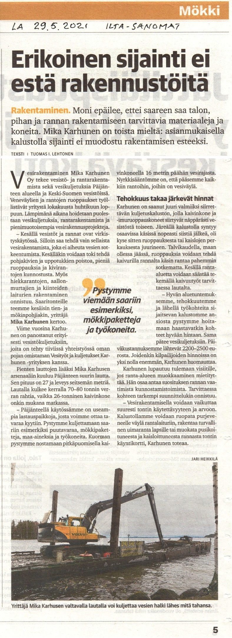 Matkalla saareen Vuoritsolaan valuhommiin